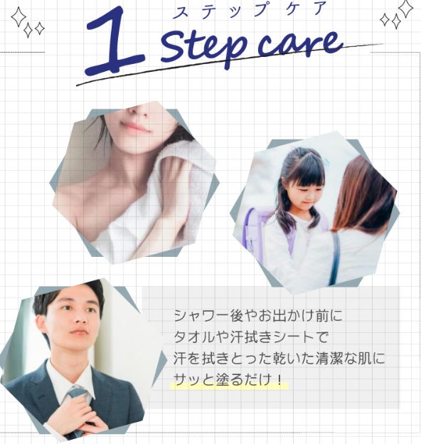 汗を拭きとった、乾いた清潔な肌にサッと塗るだけ