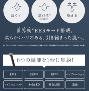 コンパクトな見た目ながら、EMS・EER・MCRの3モードを搭載し、自宅にいながらスキンケアの質を高めるサポートができます。