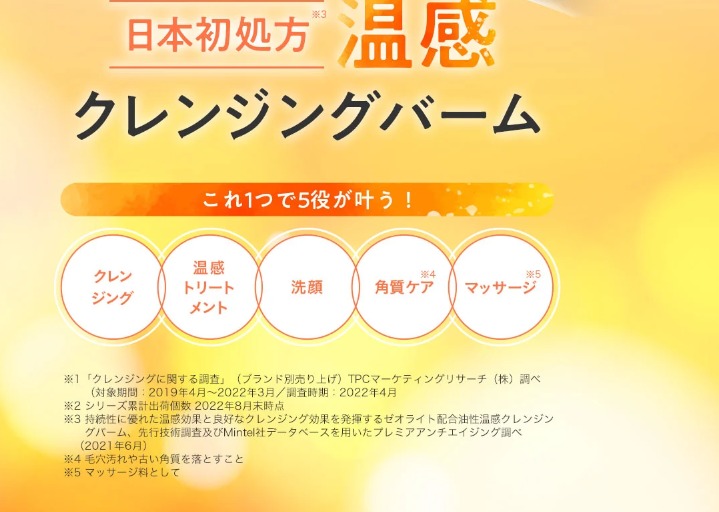 - 体温でとろけるバームが温感(あたたかい使用感)で広がり、メイクや皮脂汚れとなじませやすい設計。