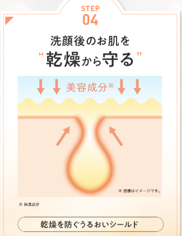 | ●トリートメント | 乾燥を防ぐ うるおい シールドで 洗顔後のお肌を 乾燥から守る |