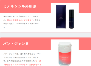 | ミノキシジル内服薬 + ミノキシジル外用薬 + パントジェンヌの値段 | 1ヶ月分18,000円(税込) 3ヶ月分54,000円(税込) 6ヶ月分107,000円(税込) |