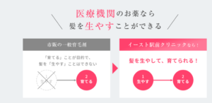 ※健康補助食品となります もう薄毛の事で悩まない!イースト駅前クリニックの公式HPを見る