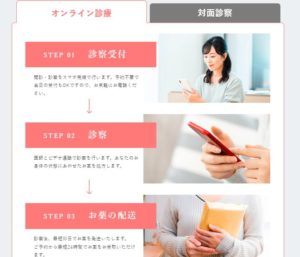 | メリット | 医師が診察してあなたに最適の薬などを処方してくれる 診察料がかからない オンラインでの診療も可能 |