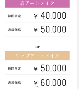 | リップアートメイク1回の値段 | 通常60,000円(税込) → 初回限定 50,000円(税込) |