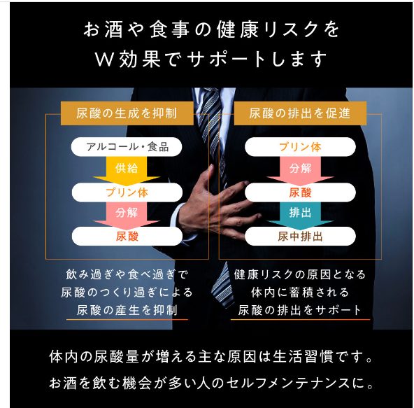 届出表示として、「血清尿酸値が高め(尿酸値5.5〜7.0mg/dL)の方の尿酸値を下げる」機能が報告されている