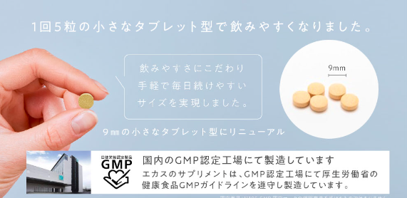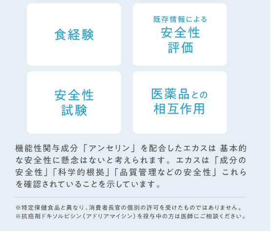 エカスでは、1日5粒でアンセリン50mgを摂取できる仕様が案内されています。