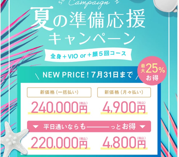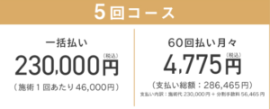 | 身+顔+vioの5回脱毛プランの値段 | 195,000円(税込) |