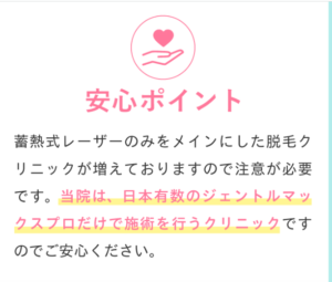 また、エミシアクリニックでは熱破壊式の脱毛器、ジェントルマックスプロを採用しています。