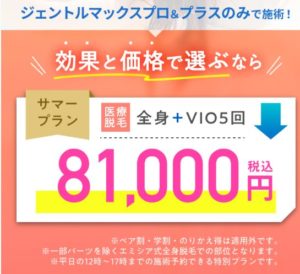 | 全身+vioの5回脱毛プランの値段 | 総額81,000円(税込) |