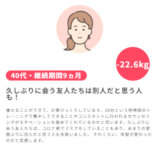 代えることができたと思います周囲から痩せたね、若々しくなった感じがする