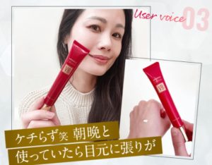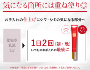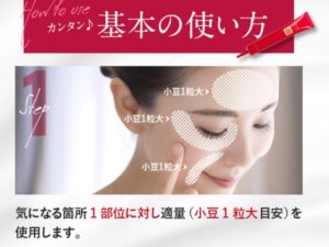 | 使い方 | 洗顔後に、小豆1粒分を顔、目元、口元などにおいて 指の腹で優しくなじませます |