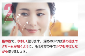 | 深めのシワは 溝の底までの クリームが届くように 片方の手でしわを伸ばしながら 塗ってください |