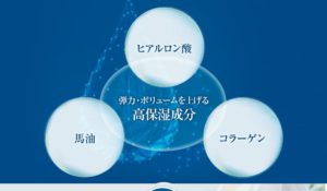 | ヒアルロン酸 馬油 コラーゲン | 弾力・ボリュームを上げる高保湿成分 |