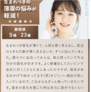 悩みだったのが、眉が綺麗に整いだして毎日が楽しくなった