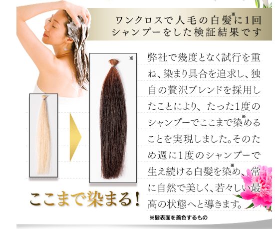 →白髪を1回で染めるタイプではなく、日々のケアで徐々に目立たなくしていくタイプです。