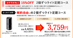 2個ずつライト定期コースの値段15%OFFの1個あたり3,759円