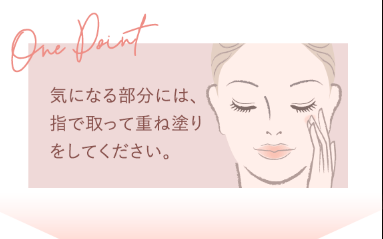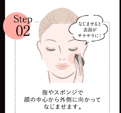 指やスポンジで顔の中心から外側に向かって馴染ませます