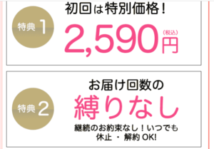 | 特典 | 3回目ごと豪華なプレゼントがもらえちゃいます 送料無料 |