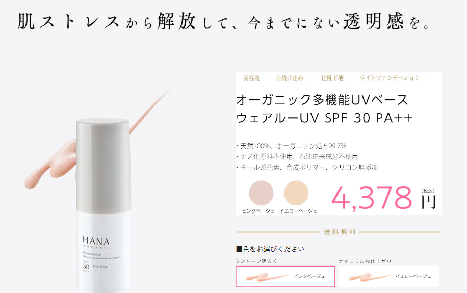 hanaオーガニック ウェアルーuvの色は2種類!あなたに合う色を!