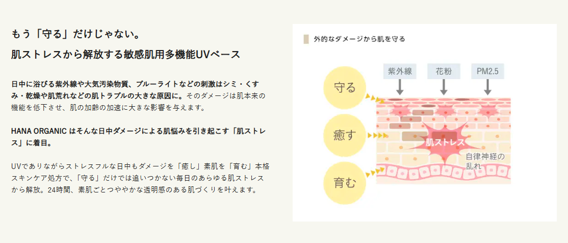 hanaオーガニック ウェアルーuvは守るだけじゃない!肌ストレスから解放