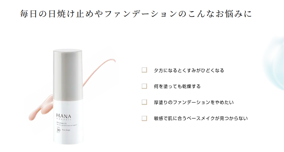 hanaオーガニック ウェアルーuvで本格ケア