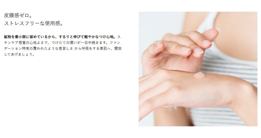 ファンデーション特有の覆われた息苦しさから呼吸をするような素肌へ解放してあげましょう。