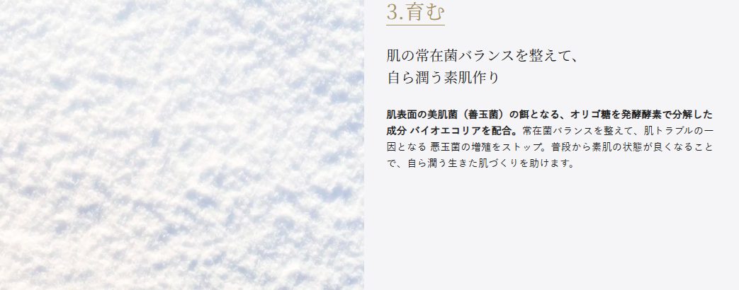 肌表面の美肌菌(善玉菌)の餌となる、オリゴ糖を発酵酵素で分解した成分 バイオエコリアを配合。