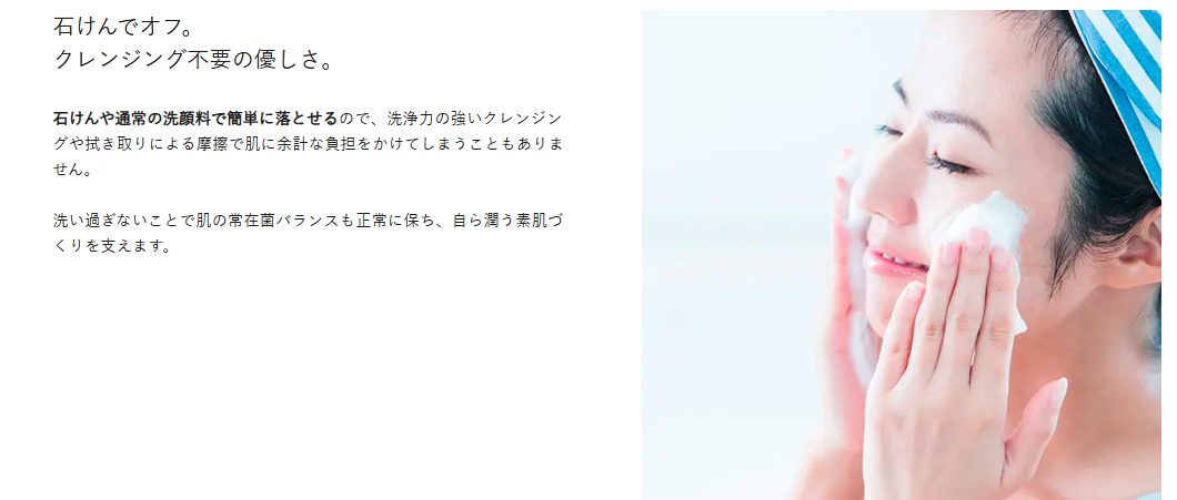石鹸や通常の洗顔料で簡単に落とせるので