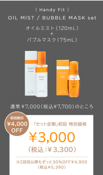 もうカサカサ肌で悩みたくない!Handy Fit オイルミスト・バブルマスクの公式HPはこちら