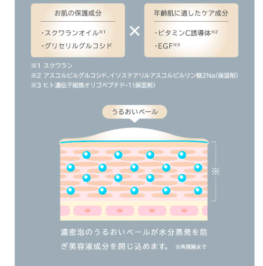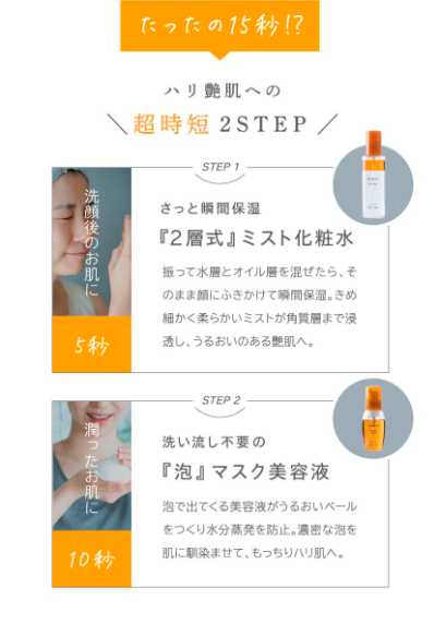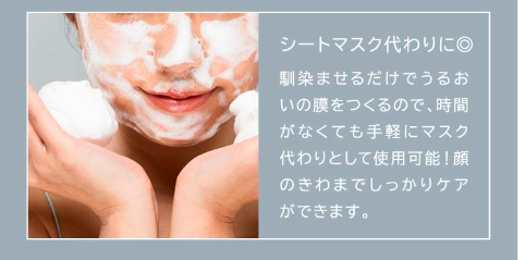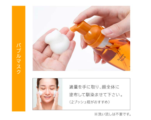 使用方法よく振ってから顔にスプレーし、泡が消える前にやさしくなじませて洗い流します。