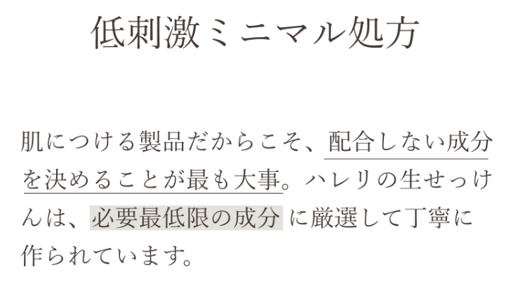 | ハレリを立ち上げた理由 | アトピーなどの肌の悩みをを持つ人が 安心して長く使える信頼のアイテムを提供したいから |
