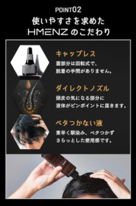 hmenz 育毛剤は脂性の頭皮でもベタつかず、外出前にさっと使えるのが便利! 髪がサラサラになって、匂いもきつくないから続けやすいです。 引用元:公式サイト