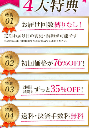 | 定期初回割引価格 | 初回限定76%OFFの1,980円(税込) |
