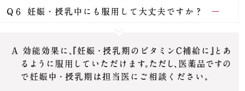 次の場合のビタミンCの補給:肉体疲労時、妊娠・授乳期、病中病後の体力低下時、老年期