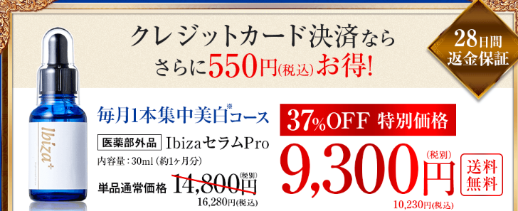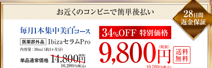 ただし、イビサセラムproの公式販売店なら34%OFFの10,780円(税込)