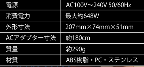 | アタッチメント | フェイス/ボディ等の専用ヘッド(同梱はセットによる) |