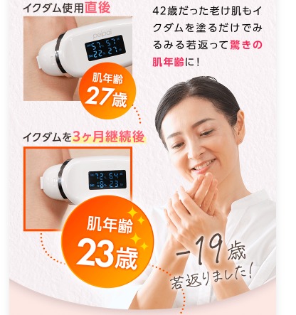 IQDUM(イクダム)を使ってから、肌が若返り、弾力が戻ったことが本当に嬉しいです。今では自分の肌に自信を持てるようになり、毎日を前向きに過ごしています。あの頃の悩みが嘘のように、今では肌が健康的で元気に見える自分を誇りに思っています。