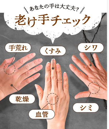 シミ・シワ・くすみは**“顔より手に先に出る”**と言われています。