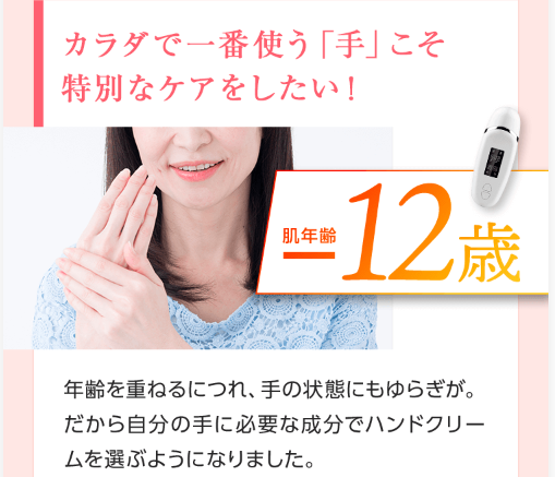 手のシワのせいで 年齢よりも老けて 見られる人にオススメ |