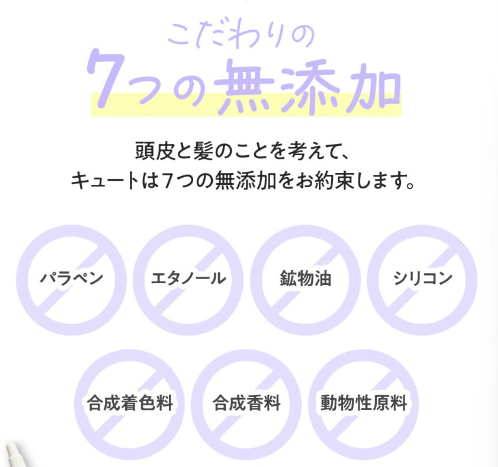 イクモア キュートヘアケアエッセンスは頭皮や髪の事を考えて7つの無添加をお約束