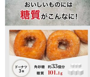 | ドーナツ | 角砂糖約33個分 糖質101,1g |