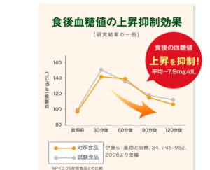 食後の血糖値を抑える、食後の中性脂肪を抑えるWの働きが検証された機能性表示食品です