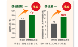 整腸作用により、排便回数、排便量が増加する結果が報告されてます