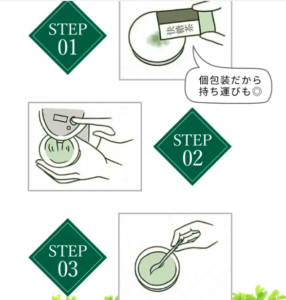 | STEP1 | 湯呑みなどに快糖茶プラスを入れる 個包装だから持ち運びも〇 |