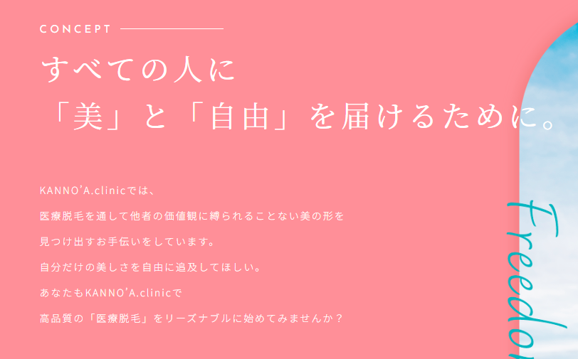 カノアクリニックの医療脱毛は、医療機関で実施するレーザー照射が特長です。