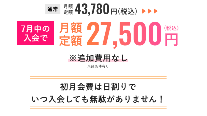 | 今月入会の方限定の月額定額料金 | 27,500円(税込) |