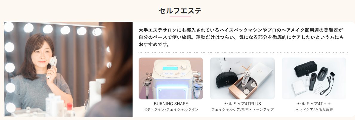 | 使い放題 | セルフエステ 有酸素マシン ミラーフィットがコミコミ |
