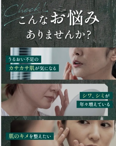 | おすすめの人 | うるおい不足のカサカサ肌が気になる シワ、シミが年々増えている 肌のキメを整えたい たるみゆるみが進み、フケ駅た気がする スキンケアにたくさんお金をかけているのに |