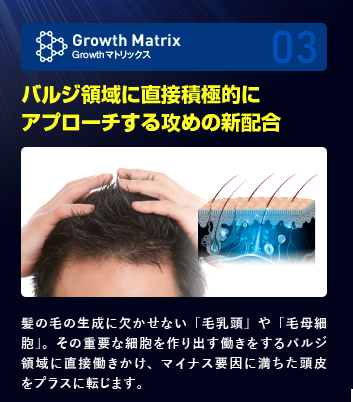| サーキュレーションX | 毛根に栄養を運ぶ頭皮のめぐりに 着目した生薬由来の成分 |