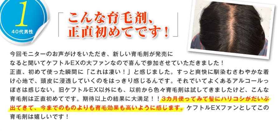 試してきましたが、こんな育毛剤は正直初めてです期待以上の結果に大満足